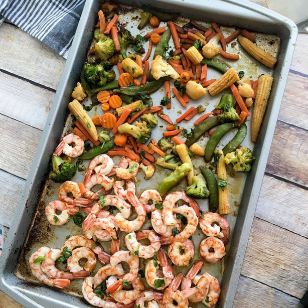 With the best shrimp marinade you’ll ever find, this is a sheet pan dinner that has a healthy blend of protein and veggies. As a bonus, it’s a quick and easy meal for busy nights.