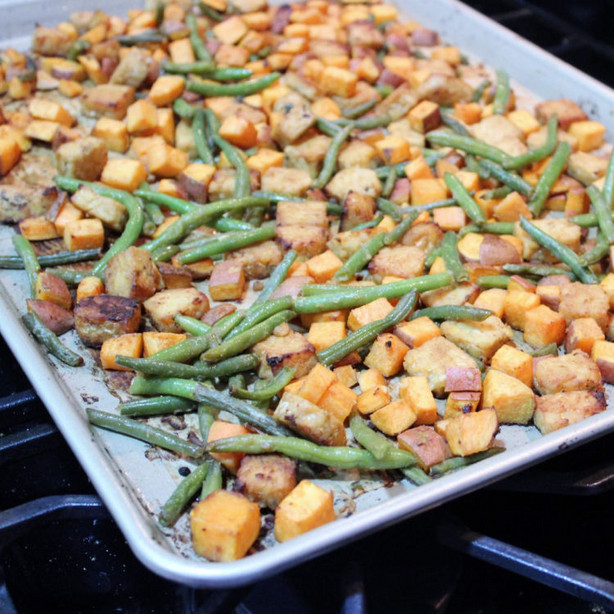 Add some plant-based protein to dinner with this delicious vegan sheet pan dinner that you can whip up in no time.