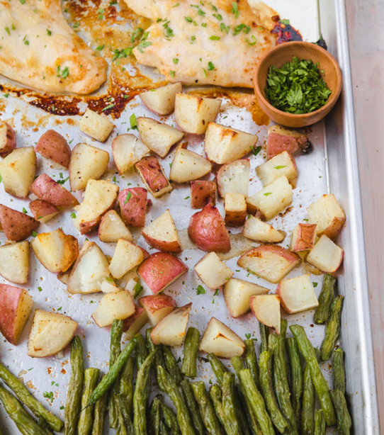 - When possible, mix everything on the sheet pan — protein, veggies, oil, seasonings and anything else you’re cooking. This saves having to wash an extra bowl.