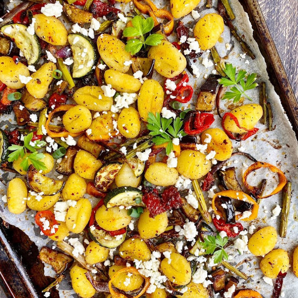 Classic Mediterranean flavors shine in this versatile and savory plant-forward dinner. Use any veggies you have on hand to make this dinner your own.